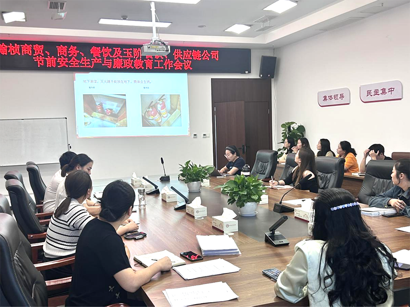 翰桢商贸、商务、餐饮及玉阶餐饮、供应链公司联合召开国庆、中秋节前安全生产与廉政教育工作会议