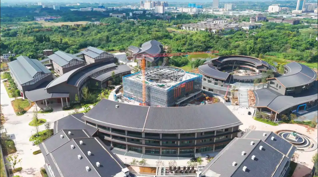 作为泸州市 2024 年重点建设项目,龙涧酒博园规划占地 179 余亩、建面 8.6 万平方米、投资 5 亿元,设五大功能区,目前 ,1-9 号楼已基本建成,并已接待多所高校 1200 余人次调研;园区完全建成后,将成为开放型产教融合实践中心与世界蒸馏酒生产展示中心,预计年产酒 1000 吨、储酒 2000 吨、创岗 200 余个。