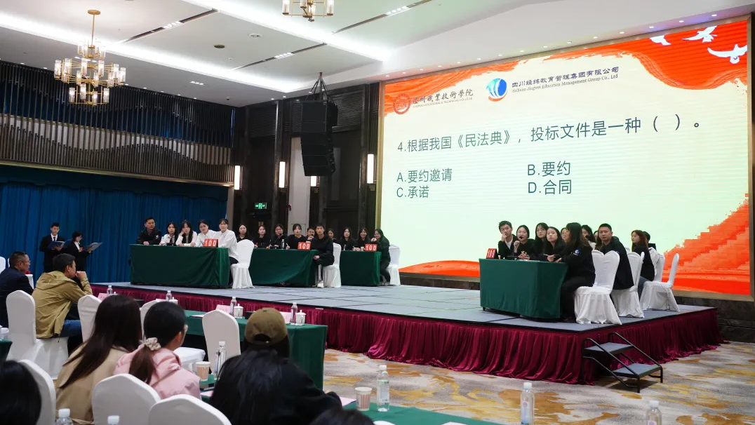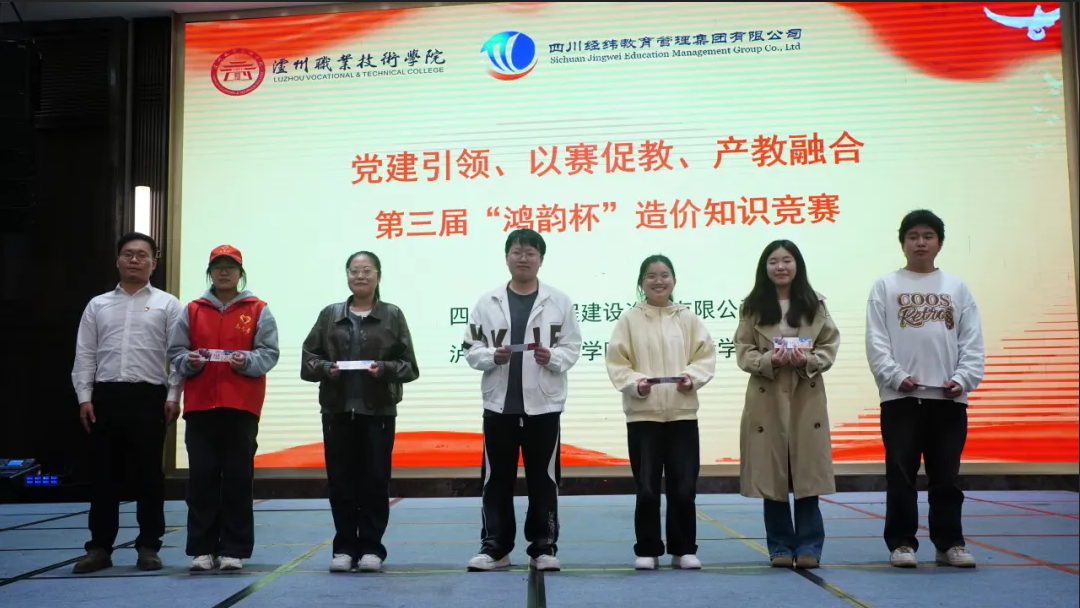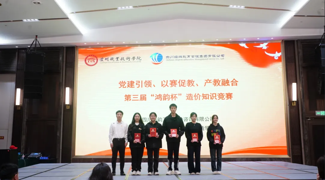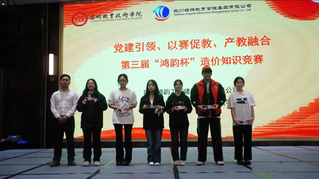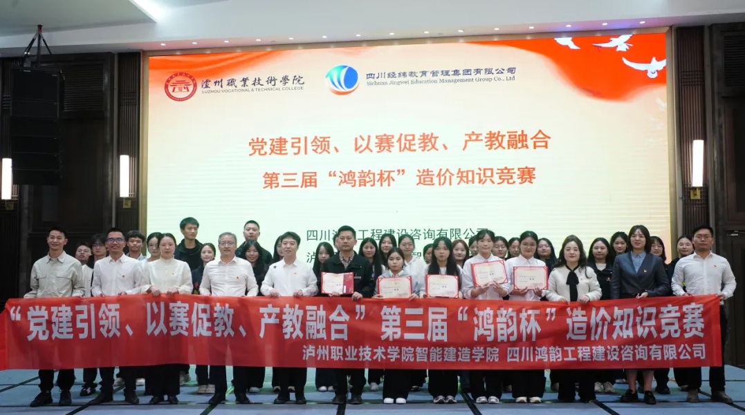 10月30日,由四川鸿韵工程建设咨询有限公司主办,泸州职业技术学院智能建造学院党总支、经纬集团党委第三党支部联合协办的第三届“鸿韵杯”造价知识竞赛圆满落幕。本次活动以“党建引领、以赛促教、产教融合”为主题,汇聚了鸿韵公司技术骨干与智能建造学院工程造价专业学生共30人,组成6支参赛队伍同场竞技。